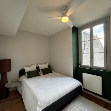 Venez découvrir ce magnifique appartement T3, en duplex, entièrement refait à neuf et meublé avec goût. Au 2ème et dernier étage d’une petite copropriété de 3 lots, il se compose d’une pièce à vivre avec sa cuisine ouverte entièrement aménagée et équipée avec des meubles et de l’électroménager de qualité et un petit balcon donnant, à l’arrière, au calme. On y retrouve également deux chambres avec de nombreux rangements (9,7 et 9,9 m2), une salle d’eau (2,5 m2) avec machine à laver séchante et un WC séparé.