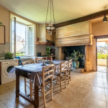 La maison est équipée d’un chauffage central avec une chaudière mixte fuel et bois et est raccordée au tout à l’égout.