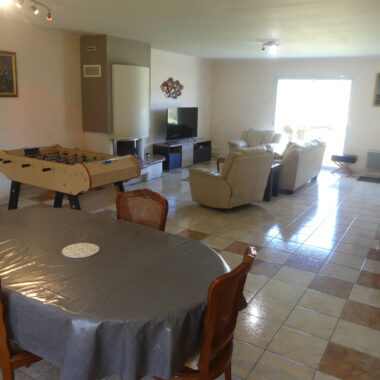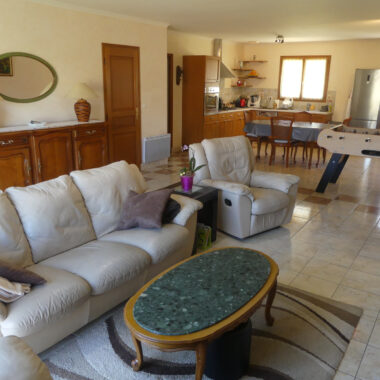 Très belle situation, au calme, pour cette maison de plain pied édifiée en 2003 et à l’état général parfaitement irréprochable. Édifiée sur un vide-sanitaire, elle comprend une très grand pièce à vivre avec sa cuisine ouverte aménagée et équipée (56,4 m2), 3 chambres (12,7 – 12,7 et 12,9 m2), une salle d’eau avec WC (9,1 m2), un cellier/buanderie (4,6 m2) et un WC séparé avec lave-mains (1,9 m2). On retrouve également une délicieuse terrasse couverte de 27 m2 avec vue dégagée sur le parc.