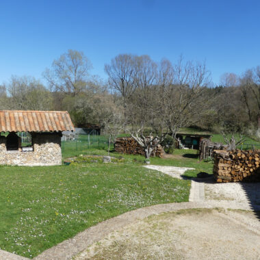 À l’extérieur se dresse un beau terrain de 1 886 m2, facile d’entretien, avec un puits et des arbres fruitiers.