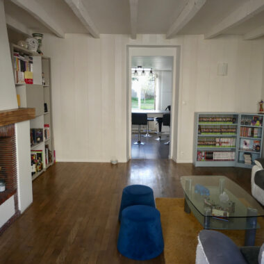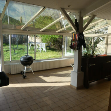 On y retrouve, de plain-pied, un salon/séjour avec sa cheminée et son charmant plancher d’origine en bois (22,7 m2), une grande cuisine séparée entièrement aménagée et équipée (17,3 m2) ouvrant sur une grande véranda de 27 m2 avec accès direct sur un charmant jardin très bien entretenu.