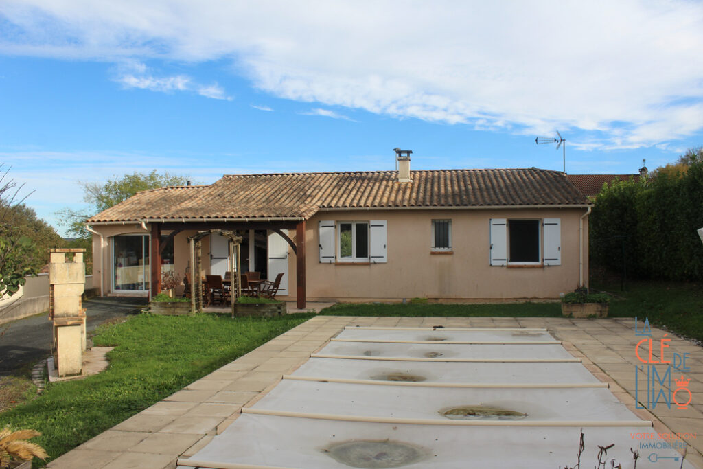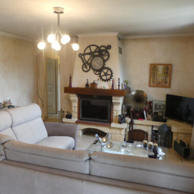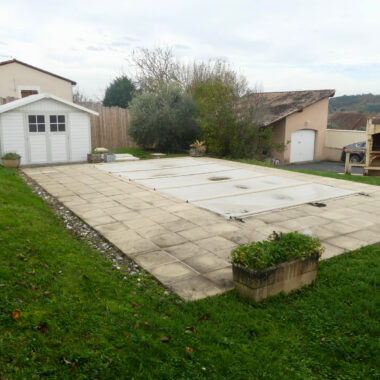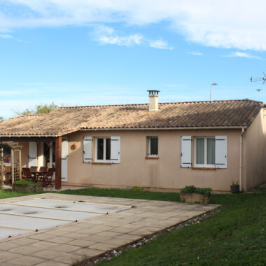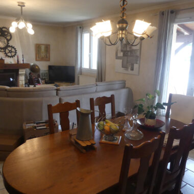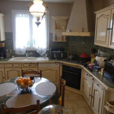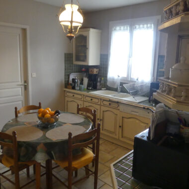 Dès l’entrée (4 m²), vous découvrirez une pièce de vie de 31,5 m2 avec son insert, ouvrant sur une agréable terrasse couverte donnant sur le jardin et la piscine. On retrouve également une cuisine indépendante de 10,8 m² – fonctionnelle et conviviale – ainsi qu’un cellier/buanderie attenant (5,73 m²), très pratique au quotidien.