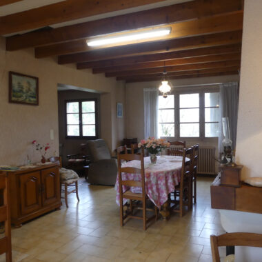 La maison se compose d’une belle pièce de vie lumineuse et traversante (40 m2) composée d’un salon et d’une salle à manger avec cheminée, d’une cuisine aménagée séparée (12,5 m2), de trois chambres (9 -11 et 11,5 m2), d’une salle d’eau mixte avec baignoire et douche (6,5 m²) et d’un WC séparé (1,5 m2).